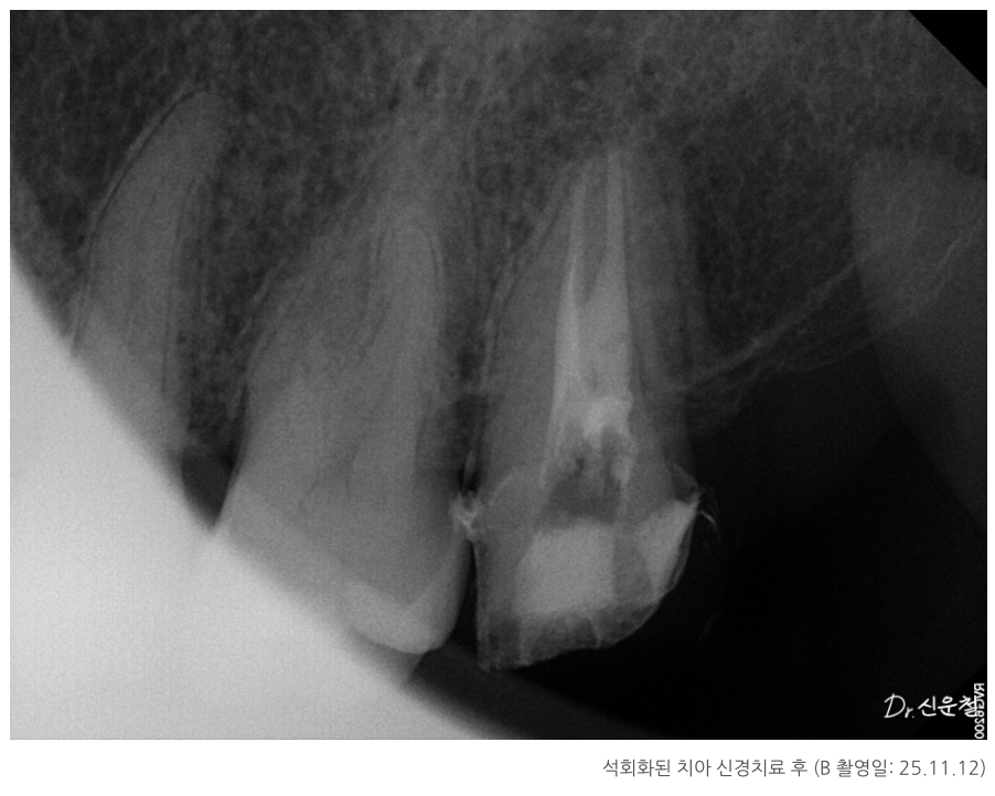 임상적으로는 신경치료 실패 또는 재발 가능성을 의심합니다.