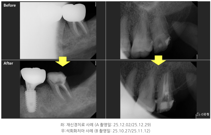 두 경우 모두 발치 대신 신경치료를 진행할 수 있었습니다.