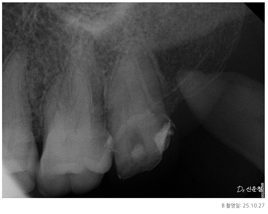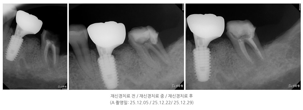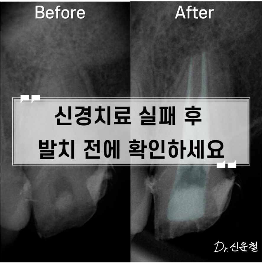임상적으로는 신경치료 실패 또는 재발 가능성을 의심합니다.